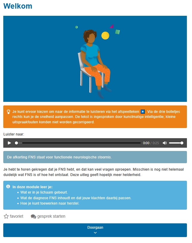 De module is een mooi stap tussen de diagnose en behandeling, maar is geen vervangen voor behandeling! Het is belangrijk dat je met je neuroloog of huisarts échte behandeling zoekt.