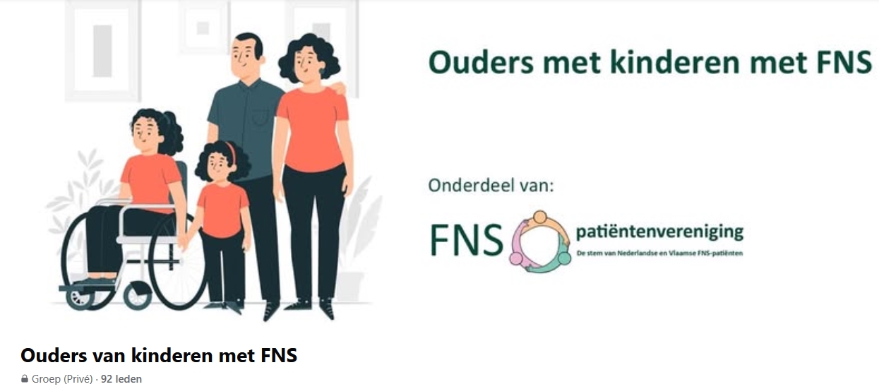 Facebook biedt de mogelijkheid om in besloten privé-groepen samen te komen. Er zijn al een paar hele fijne algemene groepen. Maar speciaal voor jongeren, voor ouders van kinderen met FNS en voor naasten van patiënten beheren wij 3 groepen.